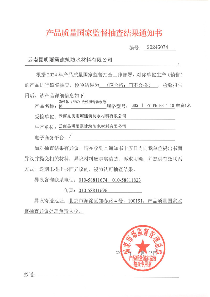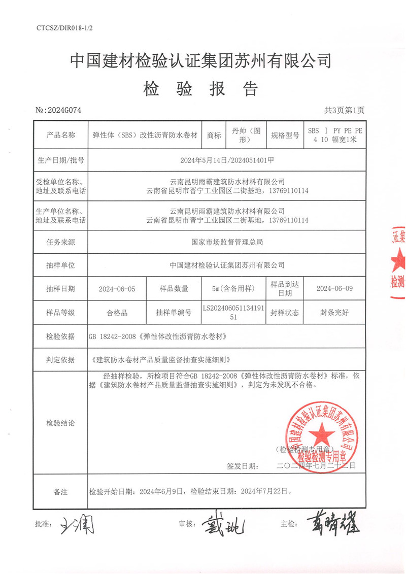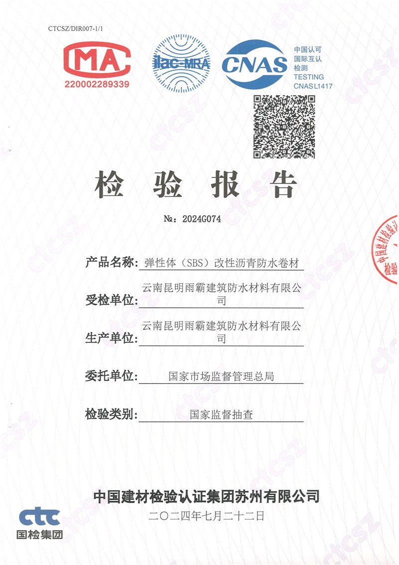 【喜報】雨霸防水卷材,通過國家市場監(jiān)督管理總局的權(quán)威抽檢